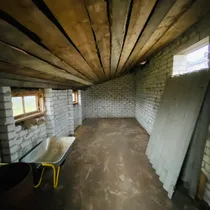 Väike plekkatusega puitmaja, silikaattellisest kuur ja mahukas kasvuhoone. Maa 1021m2, kuur 16m2.