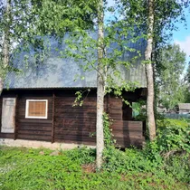 A summer cottage plot is for sale in the Oktoober cooperative. The plot is 854 m2 and contains a house under construction, measuring 4m*6m, made of tongue-and-groove timber treated with antiseptic, built on a reinforced strip foundation. The stone foundation is laid to a depth of 1.4m to the clay layer. Construction materials for floors are available, and a foundation for a stove has been prepared. The plot is level, and the land is privatized. Electricity has not yet been connected.