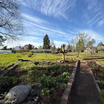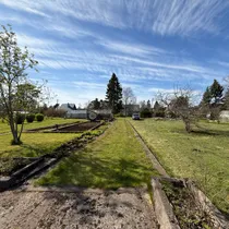 Plots are level, well-maintained, enclosed with a fence, with fruit-bearing garden and green areas.