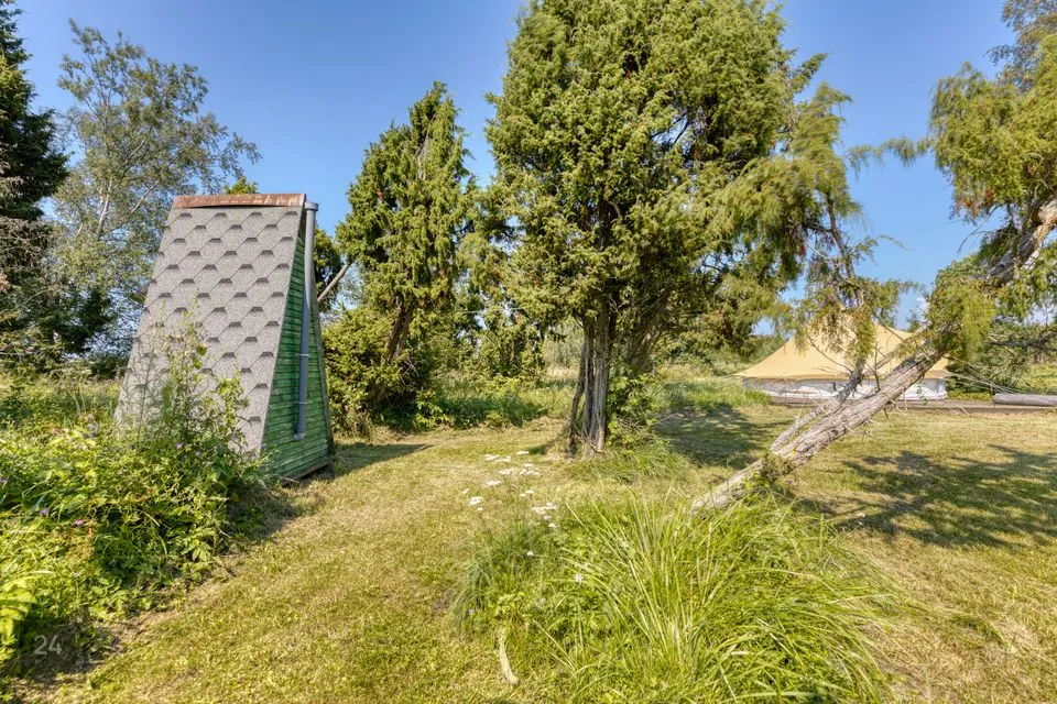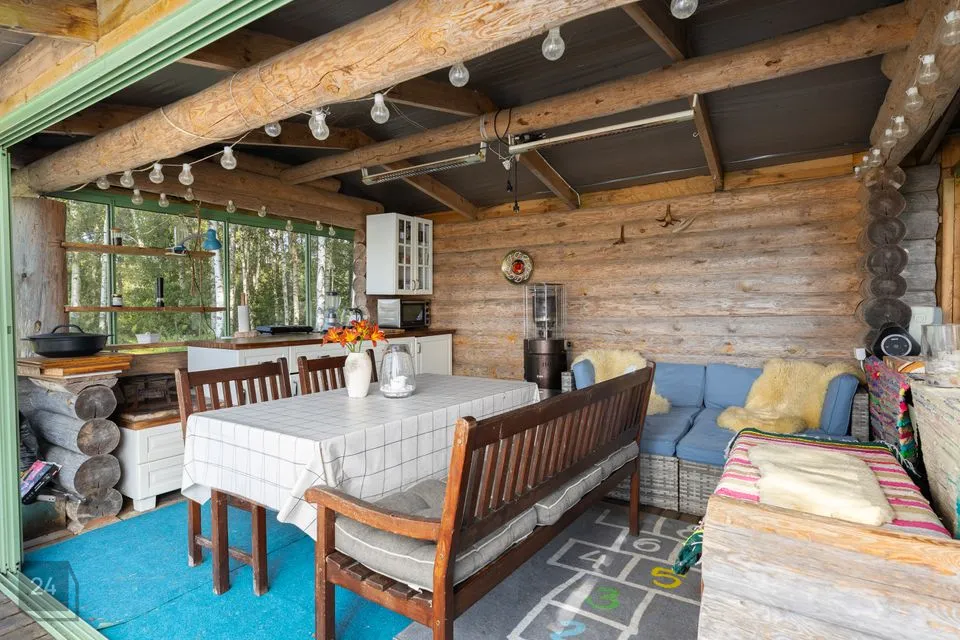 Kõrvalkinnistul asub praktiline, avarate klaaspindadega-lükandustega väliköök, kus saab vihmaste või jahedate ilmadega koos lähedastega kokata või ka lihtsalt niisama aega veeta. Lisaks on kinnistul ka külalistemaja kaugemalt tulijatele ning kuur.