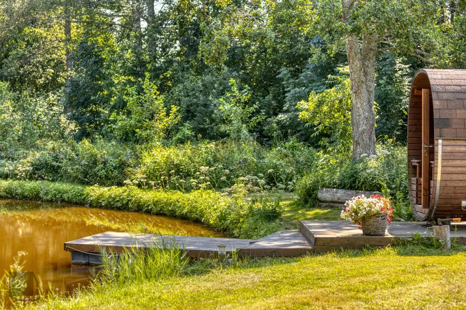 Kinnistul asub ka sinisavi põhjaga tiik, kus on võimalik ennast peale saunamõnude nautimist värskendada, aastaringselt karastada ning kust saab ka tarbevett suvilasse/sauna ja välikööki.