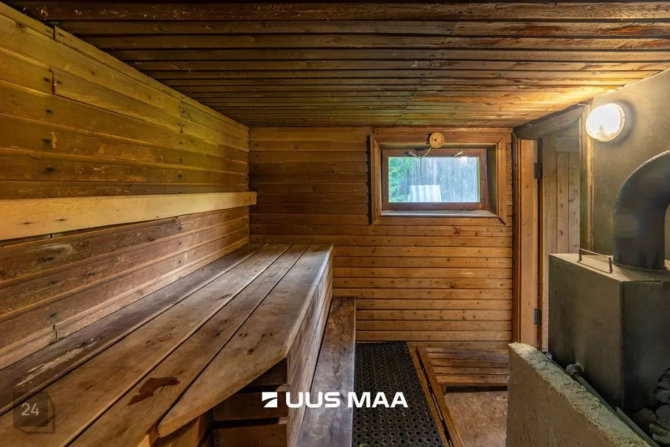 - Sauna House: The sauna house consists of an entrance hall, a lounge with a fireplace and sofas, a washing room, and a steam room.