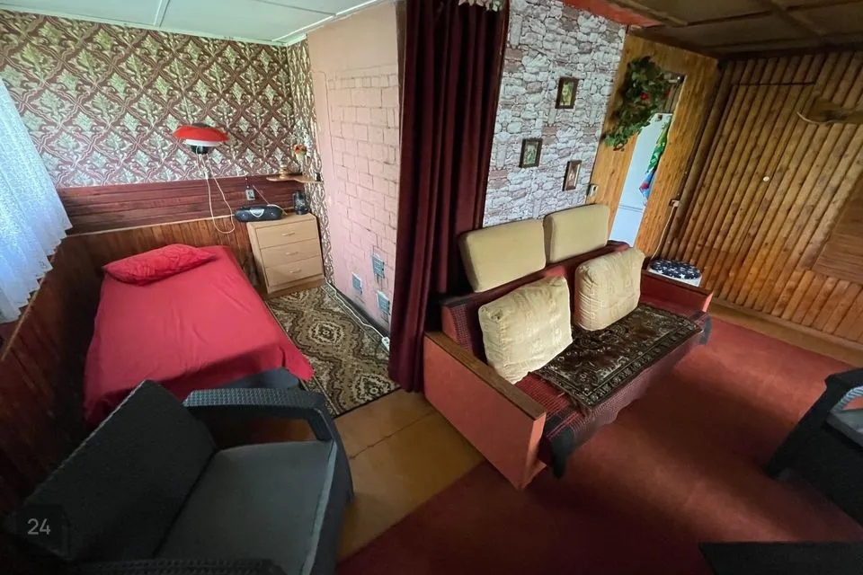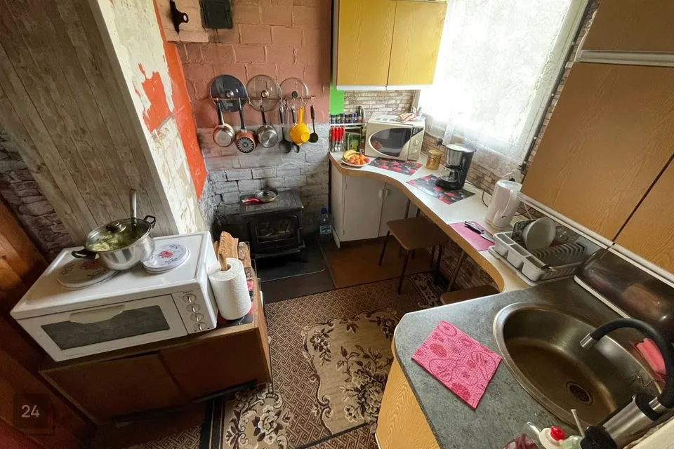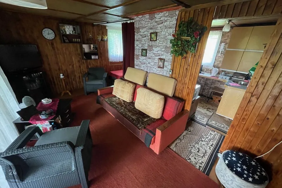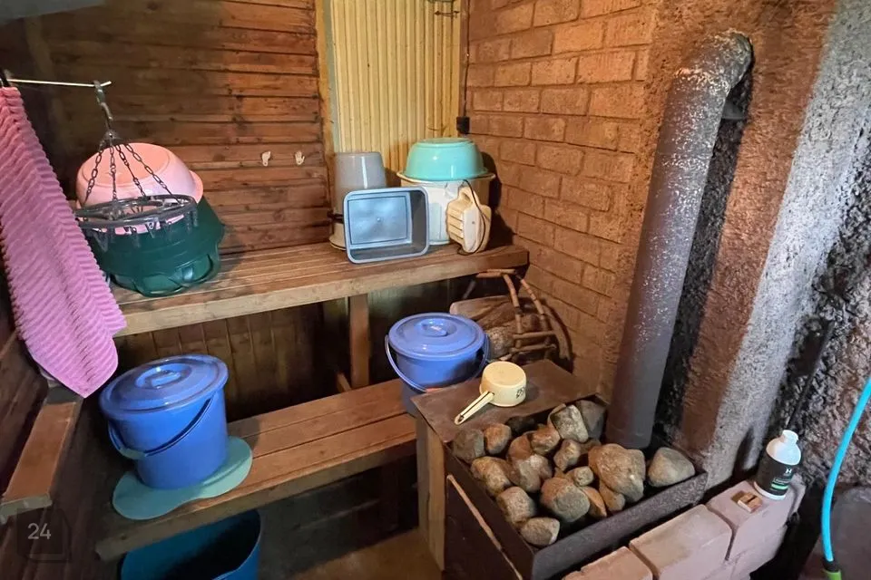 2 rooms + kitchen (water and electricity inside). Terrace and dry cellar. Wood-burning sauna. Toilet in the house.