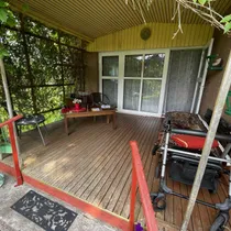 The entire plot is surrounded by a garden, the neighbors are friendly and nice, some of them live on site all year round. The plot is private enough to enjoy being alone, but at the same time feel safe.
