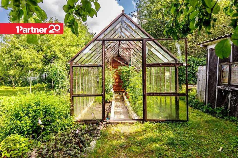 In addition to the summer house, the plot includes a greenhouse and sheds.