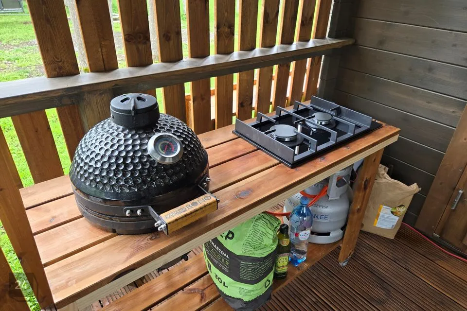 Hoovis on saun, terrass, puukuur ja välikäimla.
