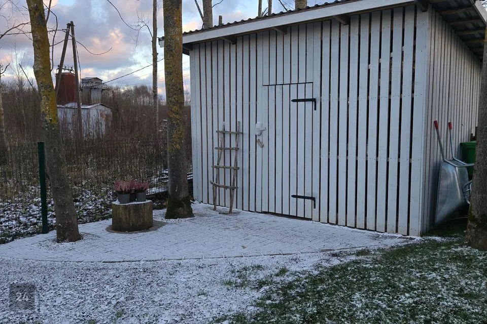 Õueala piirab keevisaed. Panipaigaks saab kasutada krundi servas olevat merekonteinerit.