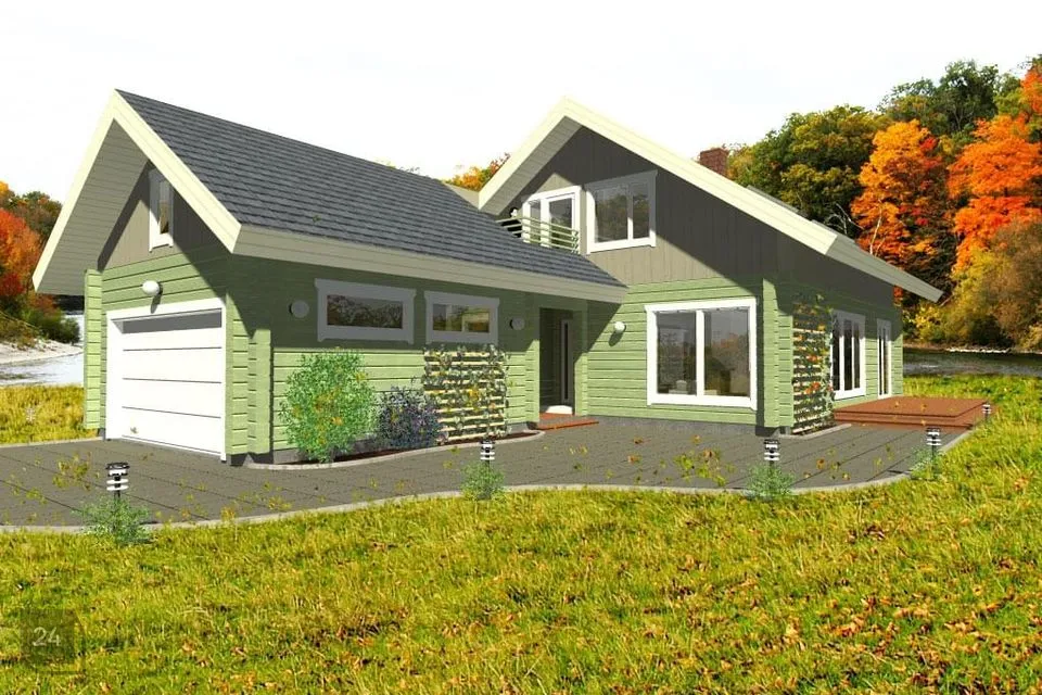 MajaKahekorruseline palkmaja Vaher on klassikaliselt kauni kujunduse ja hea funktsionaalse planeeringuga pereelamu.