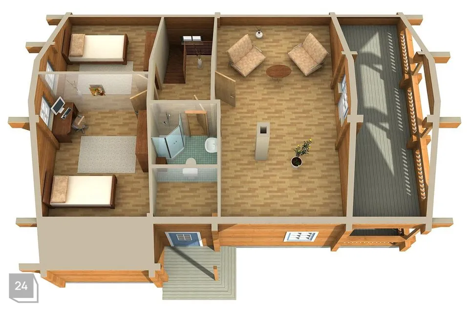 Majas on 3 magamistuba ning vannituba. Väiksema pere puhul saab ühe magamistoa muuta praktiliseks kabinetiks või näiteks külaistetoaks.