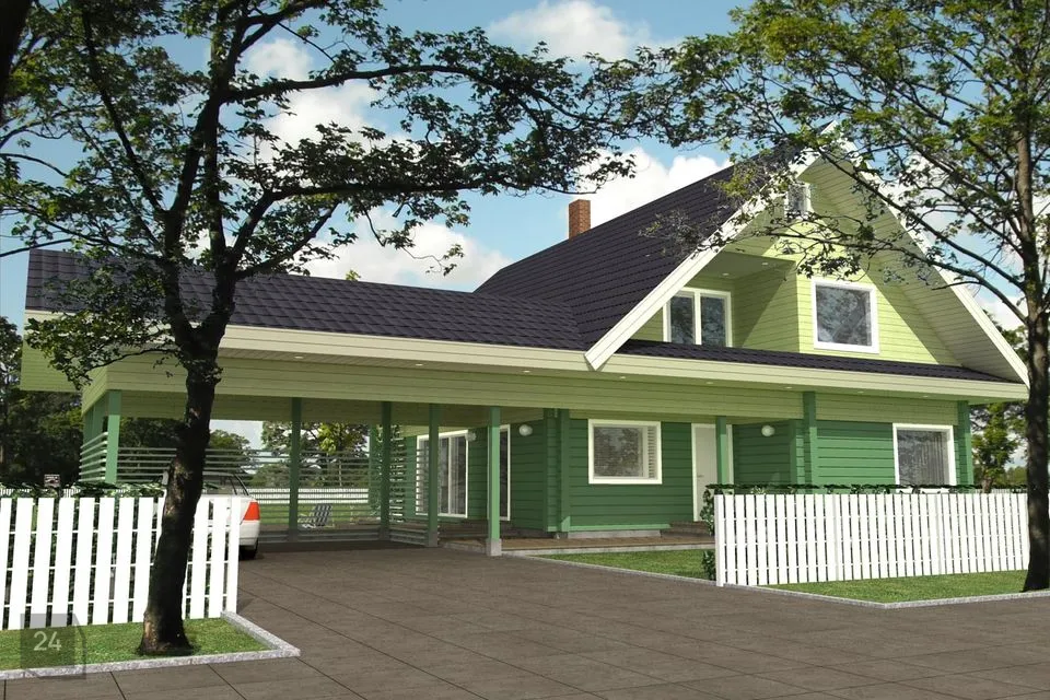 Selle maja juurde kuulub katusealune, mis mahutab 2 autot ning terrass, millest osa on samuti vihma eest varjus, et saaksite kuivalt autost tuppa.