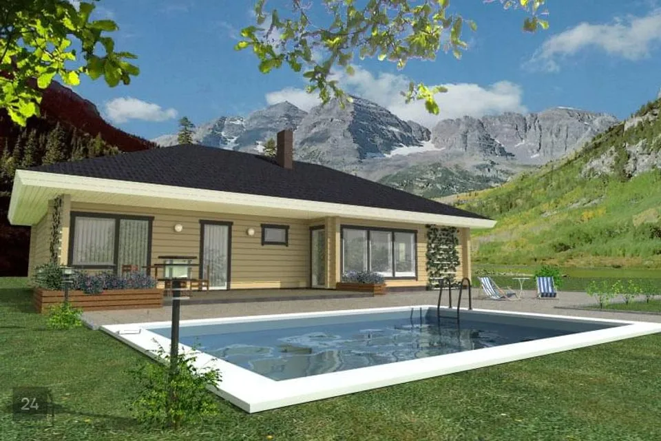 Suur terrass mahutab hõlpsasti söögilaua ja grilli ning mõned lamamistoolid päevitamiseks. Terrassilt pääseb ka suuremasse magamistuppa ja sauna eesruumi. Sauna eesruumis on piisavalt ruumi ka pesumasinale ja kuivatile, seega võib seda kasutada ka majapidamisruumina. Sauna eesruumist pääseb vannituppa ning sauna. Majas on 3 magamistuba, suurimal neist on eraldi garderoob.