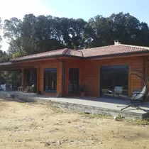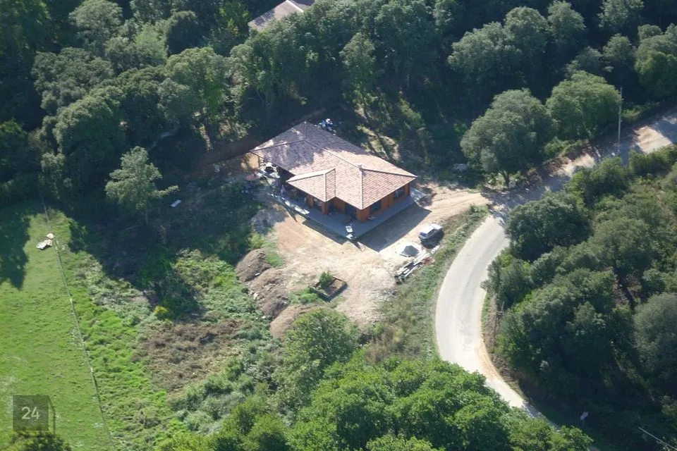 Maja ees on terrass ning sisenedes majja, läbi esiku, jääb vasakule kaks magamistuba ning teisel pool maja on veel üks suurem magamistuba.