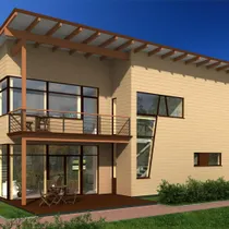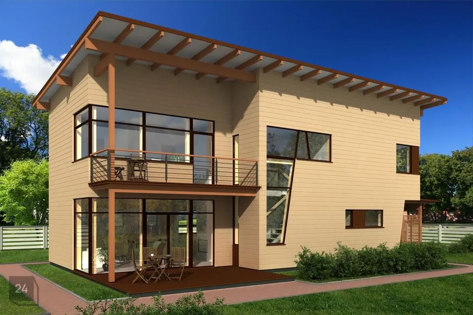 Majale lisavad toredust kõrge kaldkatus ja efektsed puittalad. Maja sissekäigu juures on auto katusealune ja panipaik.