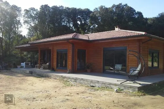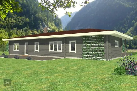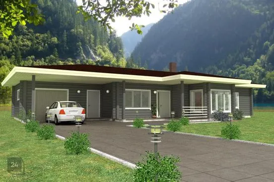Maja ees on terrass ning sisenedes majja, läbi esiku, jääb vasakule kaks magamistuba ning teisel pool maja on veel üks suurem magamistuba.
