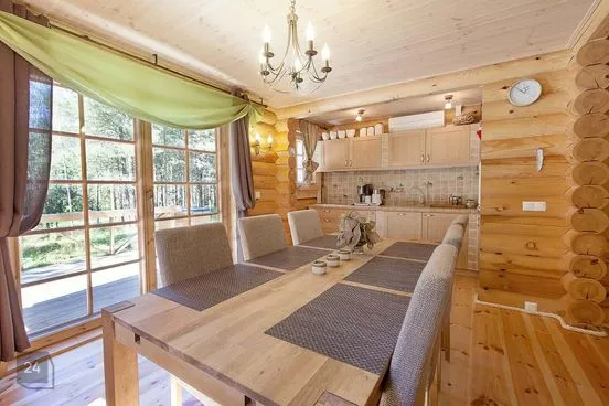 Esimese korruse toas toimivad elegantse tervikuna. Selline paigutus sobib hästi aktiivsele perele kellele meeldib koguneda hubase kaminatule ümber. Kamin asub maja keskel tänu millele saab seda nautida nii köögist ja söögitoast kui ka suurest elutoast. Vestibüülis on ruumikas garderoob ja pääs saunakompleksi. Teisel korrusel on suur magamistuba väga mahuga garderoobi, privaatse vannitoa ja rõduga. Lisaks on teisel korrusel veel 2 magamistuba ning dušširuum.