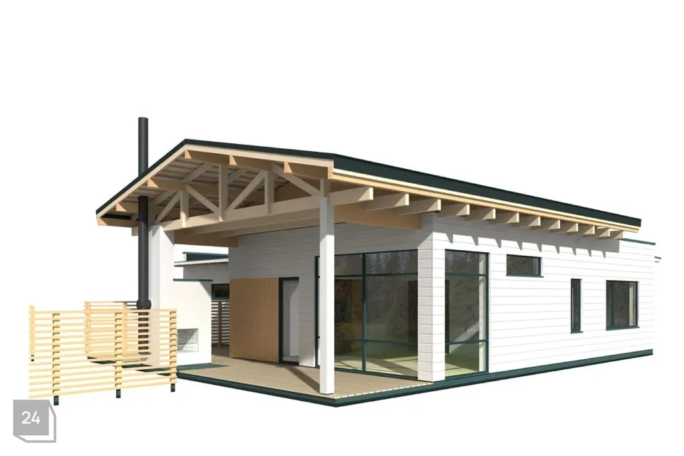 MajaClissando on kompaktne aga stiilne ühekorruseline elementmaja, millele annab iseloomu jõuline katusekonstruktsioon nähtavate taladega.