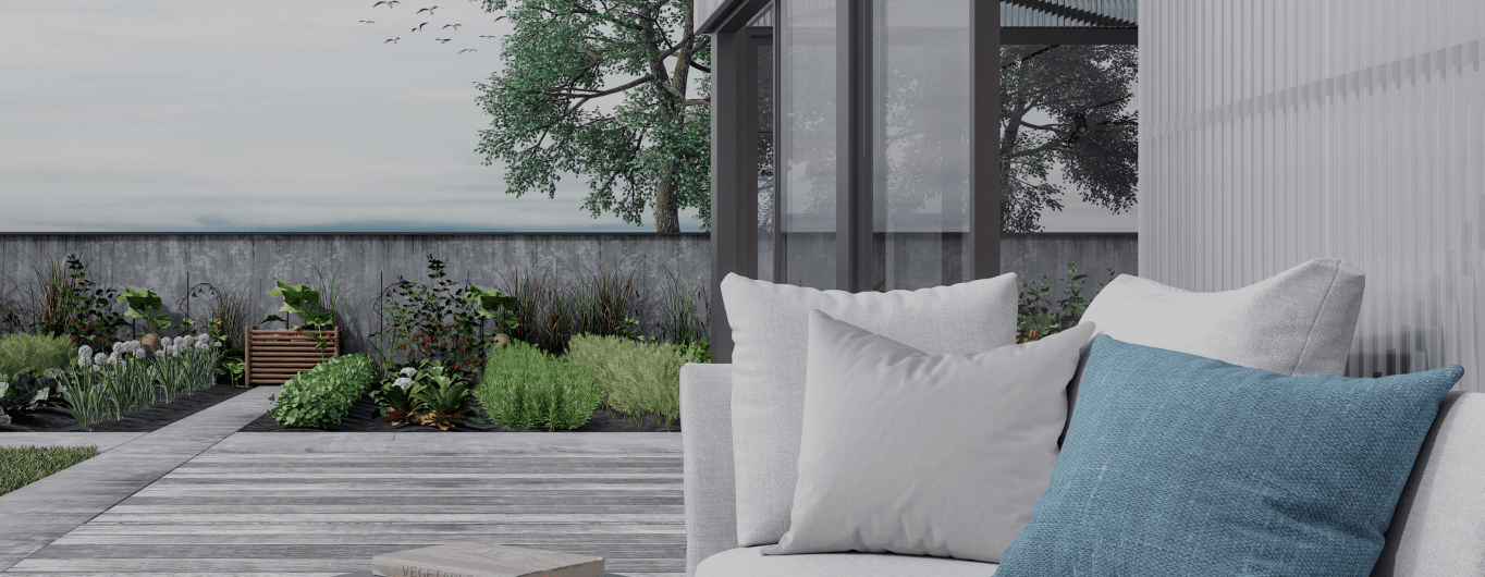 Modernseid klaaspindu tasakaalustatakse puidust terrasside ja piiretega ning lai horisontaalne fassaadilaud lisab väärikust ja korrapära.