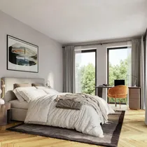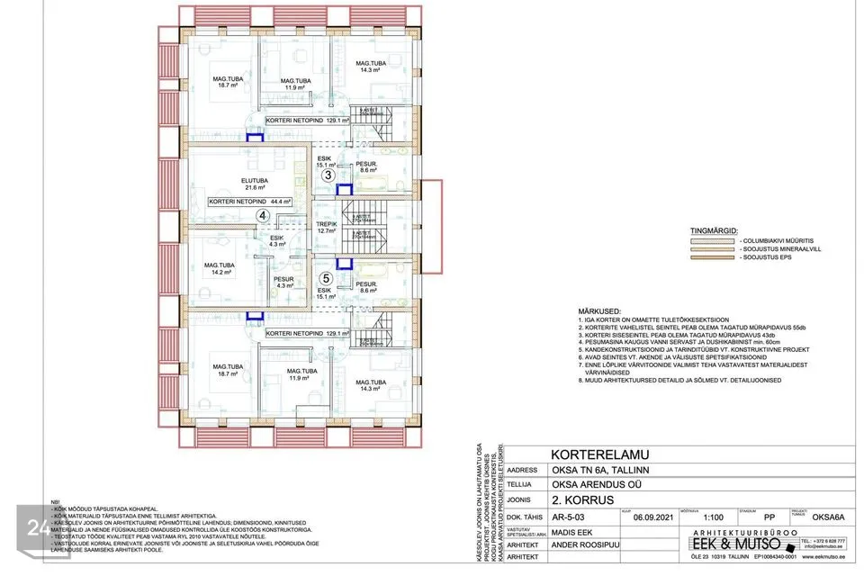 Teisel korrusel on kolm korterit- üks väiksem 2-toaline ning kaks suuremat läbi kahe korruse paiknevat 4-toalist korterit. Läbi kahe korruse projekteeritud korteritele on antud lisapääs ka 3 korruselt- peamiselt külaliste tarbeks, kuna 2.korrusel paiknevad korterite privaatsed magamistoad. Katusekorruse elutuba-köökide juures on mõlemal korteril õhutupäikesele avatud terrassid.