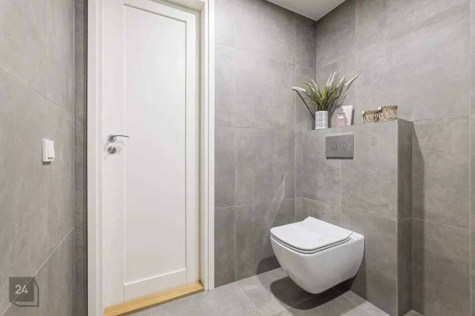 Tubade põrandaid katab 3-lipiline tamme laudparkett, ning kivipinnad nii esikus kui vannitoas on ilusa Luna Cool Grey varjundiga.