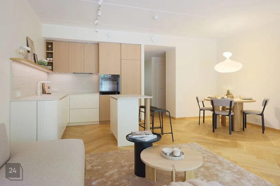 Kortermajas on suurte akendega 2-4-toalised valgusküllased ja avarad korterid. Eluruumide lagede kõrgused 1.-2. korrusel on 2,7 m, 3.-4. korrusel 2,8 m. Osade 4. korruse eluruumide laed on nähtavale jäävate puidust katusetaladega. Valdavalt on korterid avarate lodžade või katuseterrassidega.