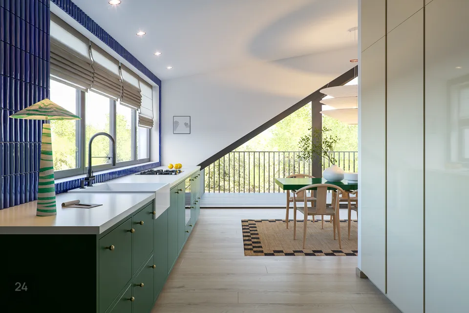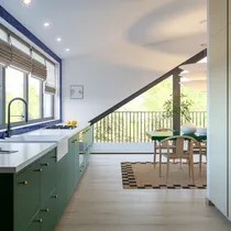 Kaks viimast 4-toalist korterit on funktsionaalse ja efektiivse planeeringuga läbi kahe korruse -soklikorrusel asuvad magamistoad ja 1. korrusel ootab sind avar elutuba vaatega maja sisehoovi.