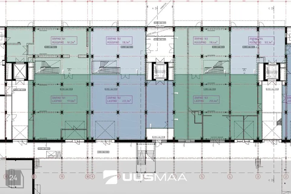 Üürihind: ladu/tootmine 9 eur/m2, büroo/esindus 11 eur/m2.