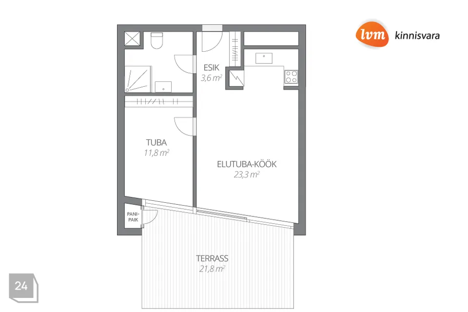 Võimalik juurde osta 2,9 m2-ne panipaik elamu I korrusel hinnaga 5000 eur.