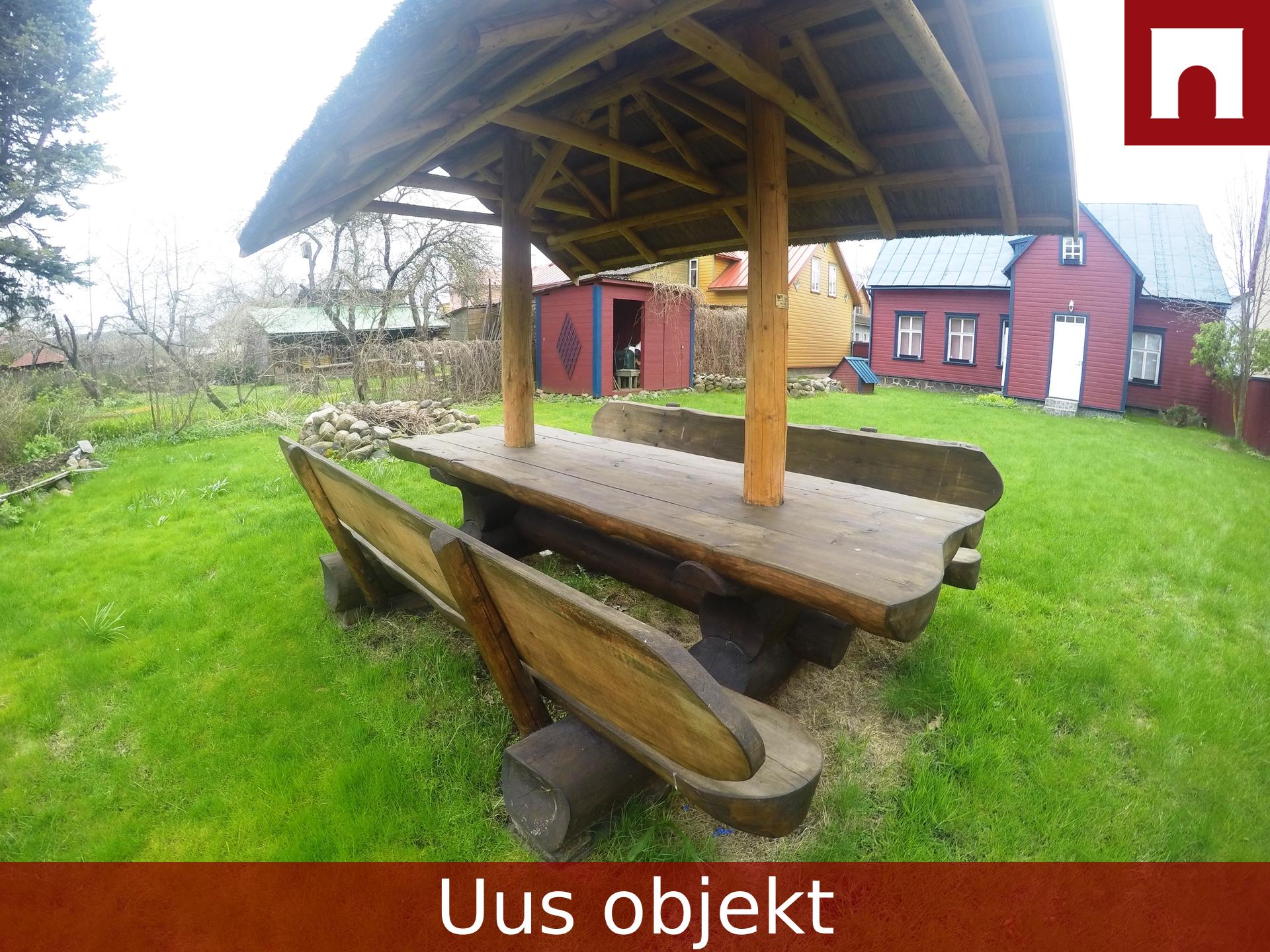 Kinnistu on ümbritsetud aiaga. Õuealal asub õlgkatusega söögilaud suviste grilliõhtute nautimiseks.